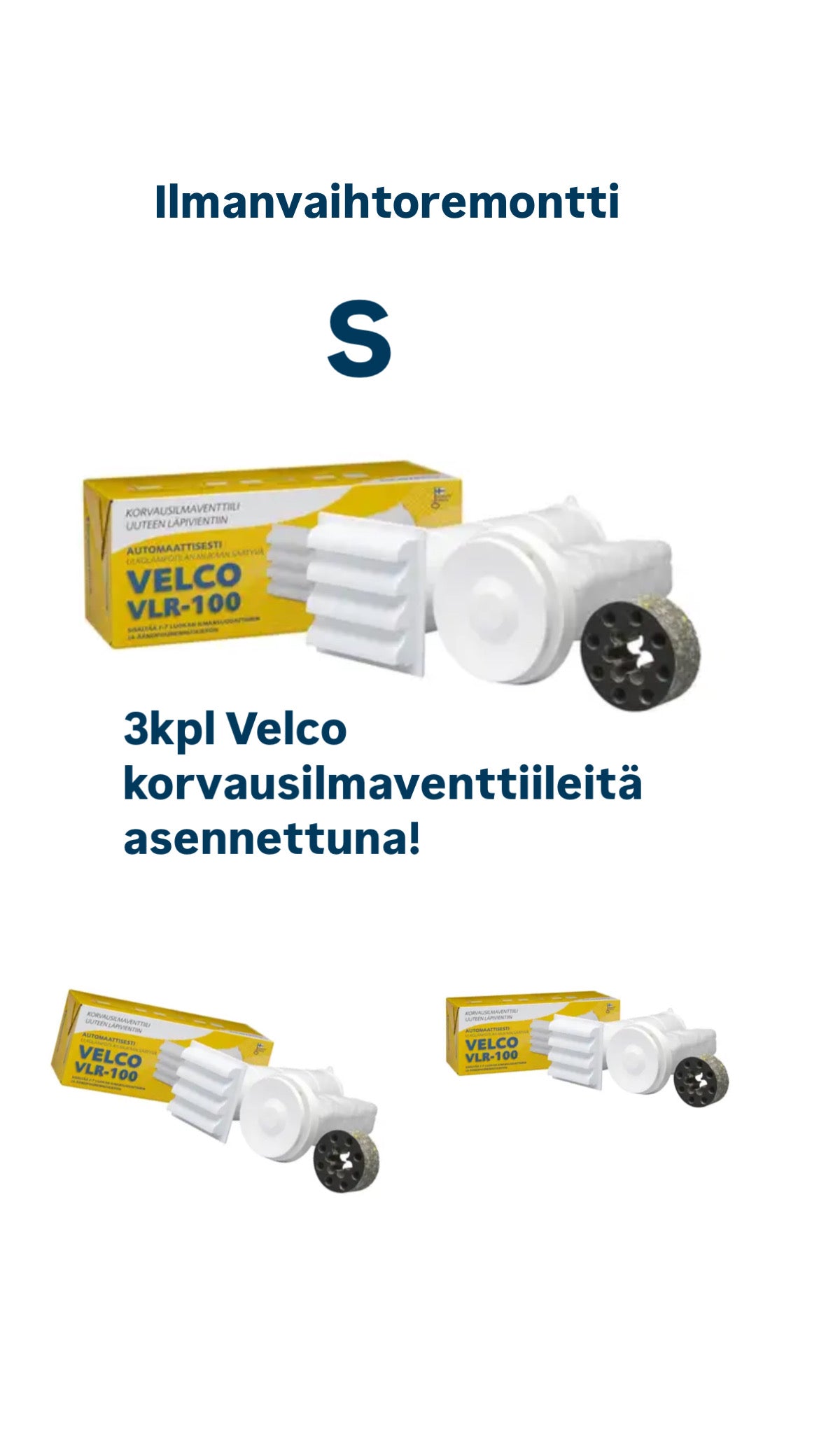 Korvausilmaventtiileinä käytämme pääasiassa Velcon tuotteita. Velco VLR-100 on seinän läpi asennettava, automaattisesti ulkolämpötilan mukaan säätyvä korvausilmaventtiiliratkaisu. Korvausilmaventtiilin toimintavarma vahatermostaatti säätää sen avausta ulkolämpötilan mukaan torjuen vetoa ja parantaen ilmanvaihdon energiatehokkuutta.